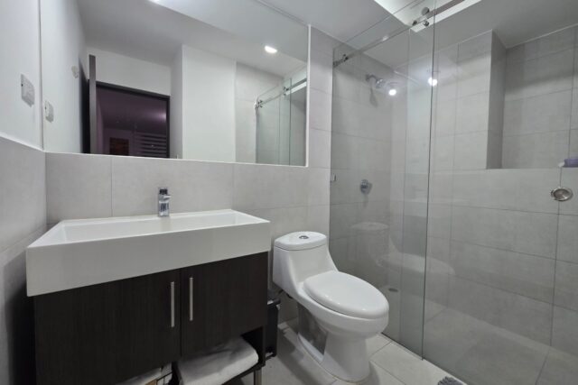 Dispone de dos habitaciones, donde la habitación principal cuenta con baño privado, además de dos baños completos en total. El apartamento se renta completamente amueblado, listo para mudarse.